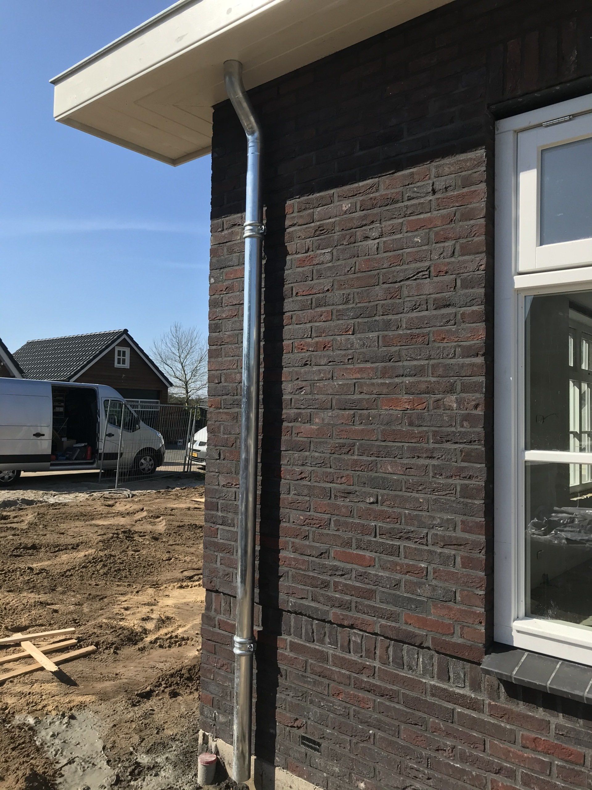 Zo loopt er regenwater via de dakbedekking naar de uitwateringen en dakgoten om vervolgens via de regenpijp het riool te bereiken.